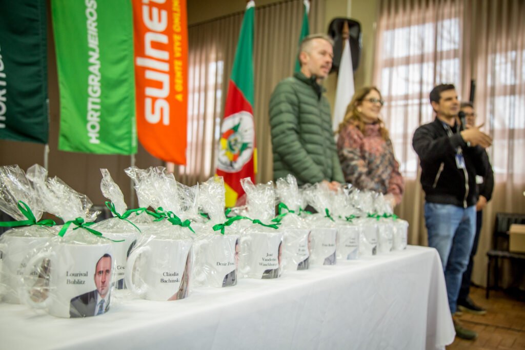 Estiveram presentes autoridades municipais e estaduais, além de representantes da Emater/RS-Ascar, como o gerente regional, Valmir Thume, e o presidente, Luciano Schwerz. O momento também foi marcado por homenagens do Hortigranjeiros aos ex-presidentes da feira, em reconhecimento à contribuição de cada um para a consolidação do evento, que completa 42 anos neste sábado.